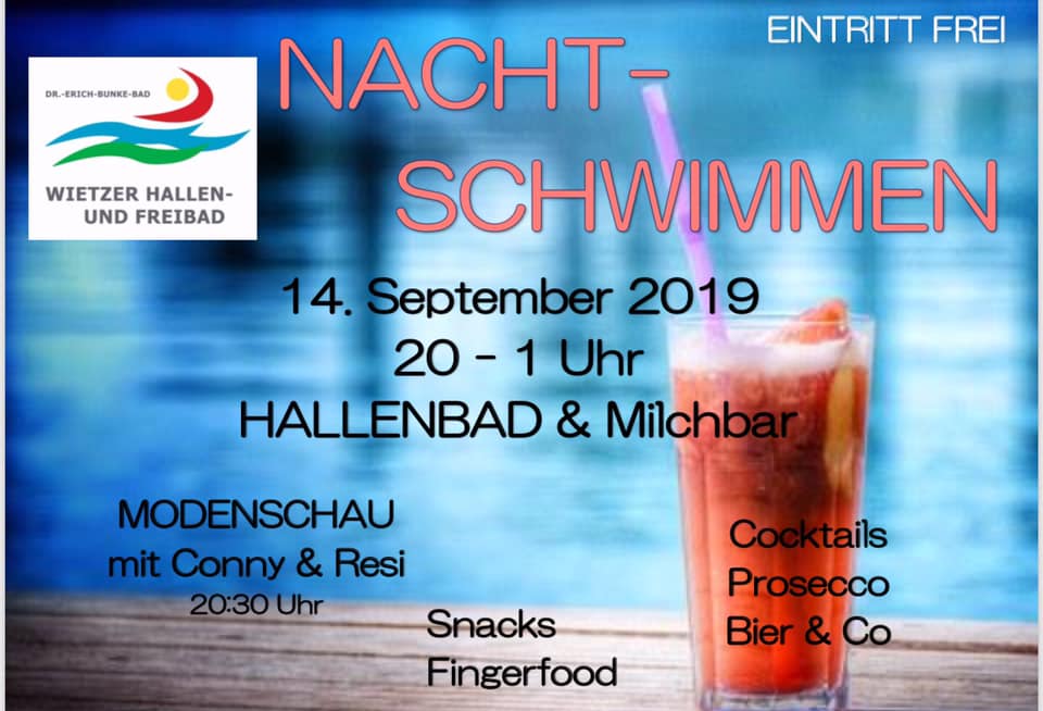 Unsere Vorbereitungen laufen auf Hochtouren! Ab 20 Uhr ist Einlass und um 20:30 startet in der Milchbar eine tolle Modenschau! Genießt einen schönen Abend in der Milchbar bei Getränken und kleinen Snacks... und beim schwimmen im Hallenbad!